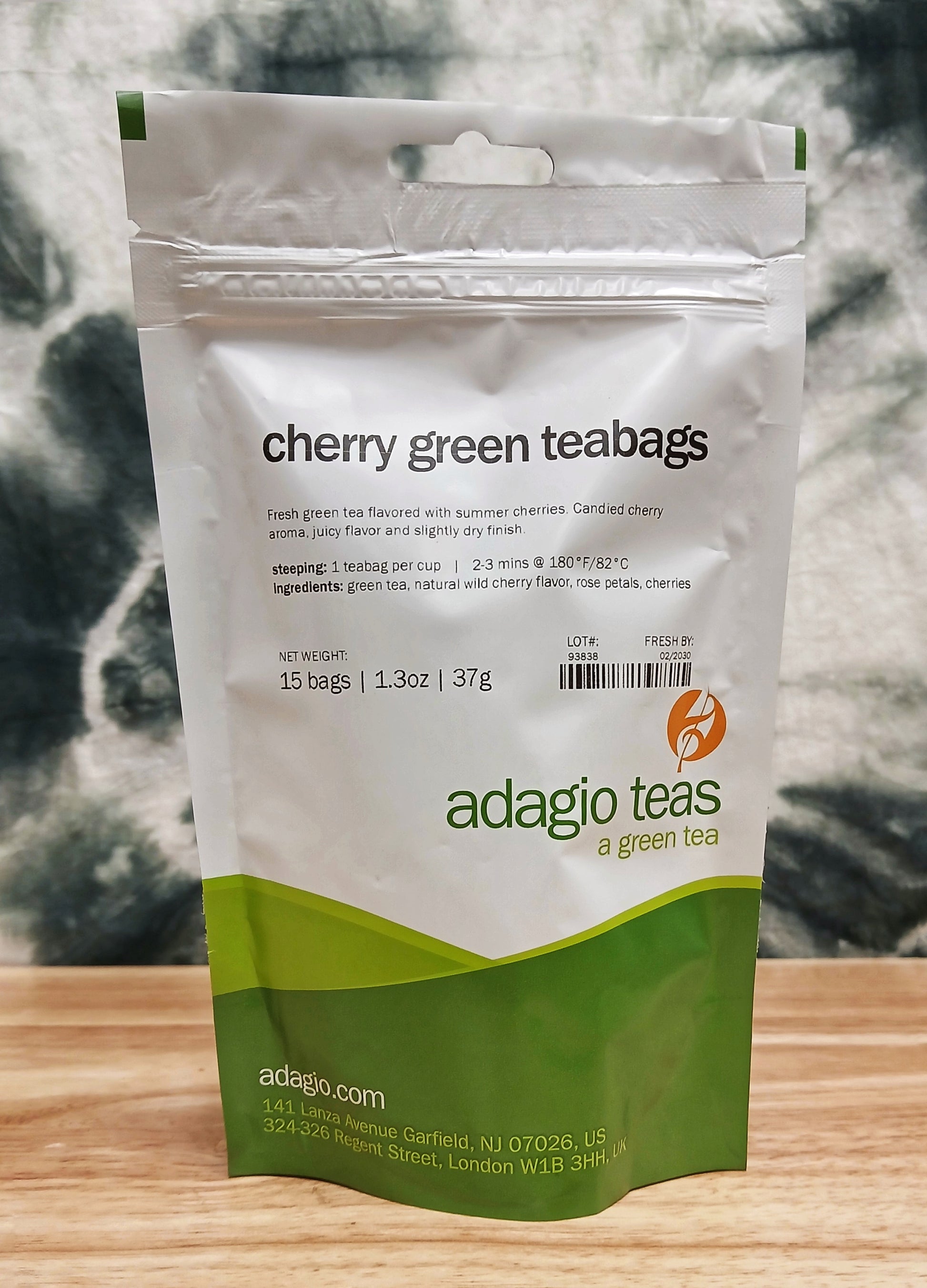 - Ingredients: Green tea, natural wild cherry flavor, rose petals, cherries