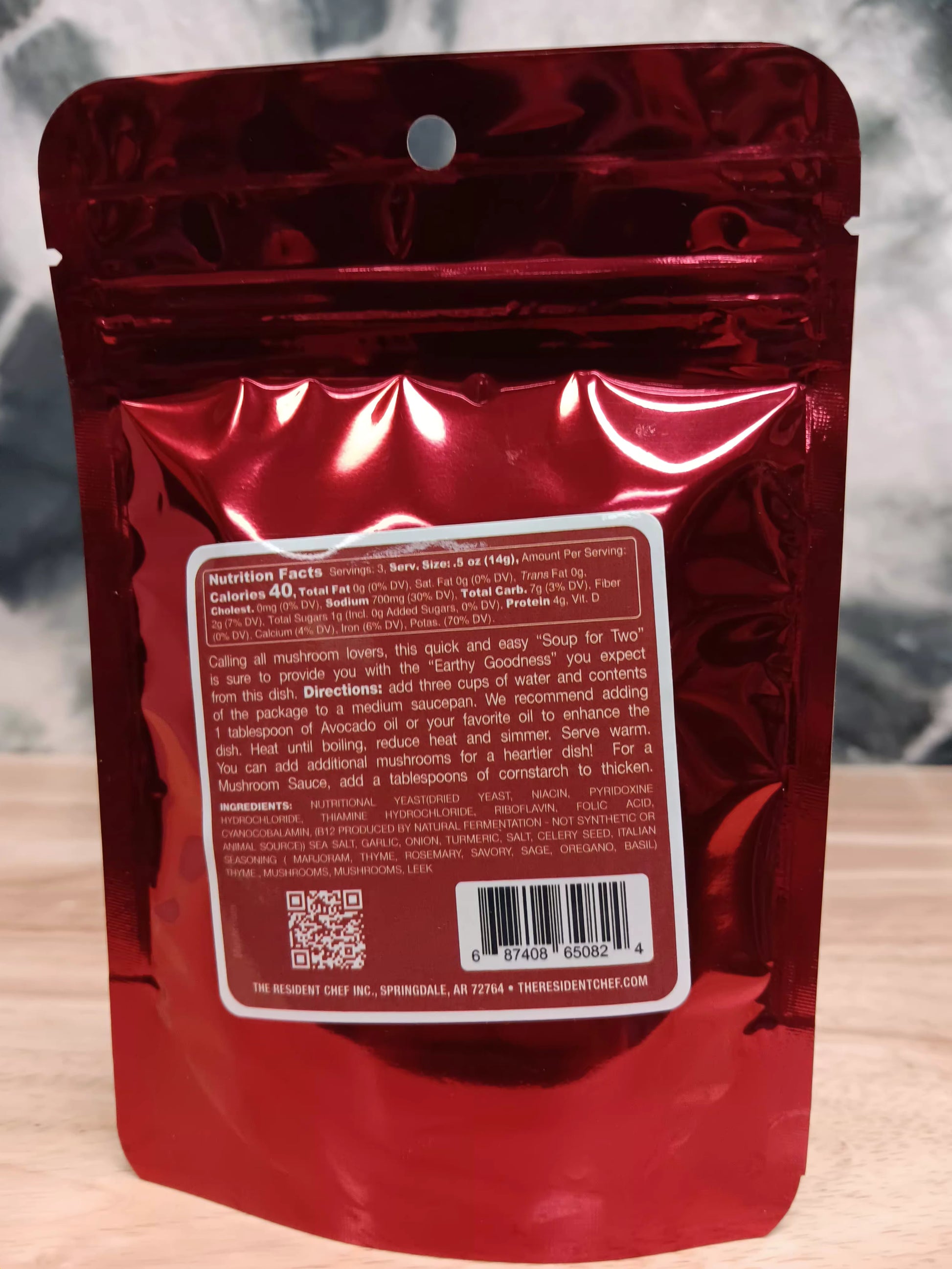 This cozy Mushroom Soup for Two blend brings together gourmet flavors in a convenient pouch, perfect for sharing. Just add water (and optional extras if you like) for a quick, satisfying meal.
